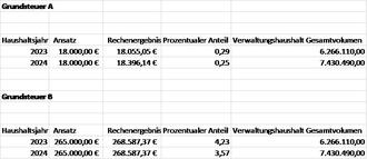 Auf Grund dessen wurden Berechnungen erstellt aus denen ersichtlich ist, welche Auswirkungen die neuen Messbeträge auf die Grundsteuer A und B haben.