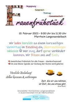 Wir laden herzlich ein am Sonntag, 12. Februar 2023 um 18 Uhr in der Pfarrkirche Langensendelbach.