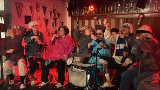 Gleich darauf schleppten sich die doch schon recht gebrechlichen Einwohner der Seniorenresidenz Bachwiesen mit ihren Rollatoren und Krücken zur wöchentlichen Sitzgymnastik auf die Bühne. Eigentlich hatten die so gar keine Lust auf sportliche Betätigung und waren froh, als die Gymnastiklehrerin dringend mal wegmusste. Denn dann konnten die Alten endlich a gscheite Musik auflegen und die Sau rauslassen!