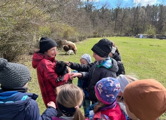 Begeistert waren die Kinder auch beim Besuch bei den kleinen Schäfchen. Neben den geplanten Aktivitäten hatten die Kinder auch viel Zeit zum Spielen und Toben.