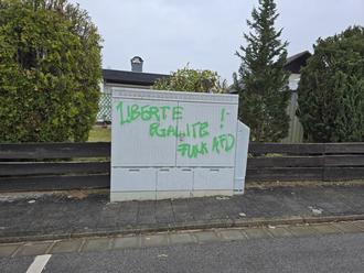 In der Nacht von Samstag (22.03.25) auf Sonntag (23.03.25) haben bislang unbekannte Täter ein Werbeschild und Verteilerkästen im Ortsteil Bräuningshof beschmiert. Wiederholte Sachbeschädigungen an Verteilerkästen und Schildern belasten unsere Gemeinde. Helfen Sie uns, die Täter zu identifizieren! Die Gemeinde duldet keine mutwillige Zerstörung öffentlicher Einrichtungen.