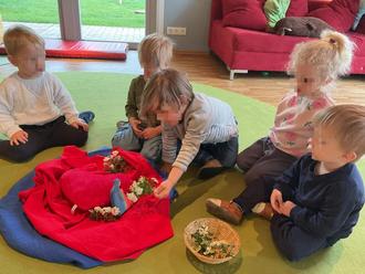 Kaum ist der Osterhase vorbei gehoppelt, steht schon das nächste Event im Kinderhaus an: Der Mutter- und Vatertag steht vor der Tür und Anfang Mai besuchen uns die Großeltern am Oma-Opa-Tag in der Einrichtung. In der Krippe stiegen wir mit einem Kett-Kreis in das Thema ein. Wir hörten von Maria und dem Jesus-Baby und lernten Maria als Mutter Gottes kennen.