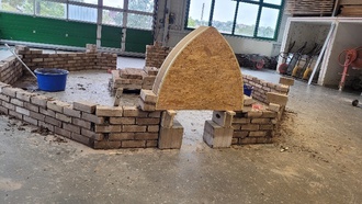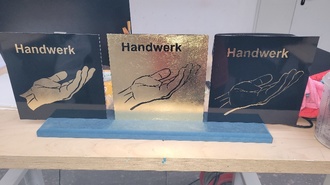 Nach einer kurzen theoretischen Vorstellung des jeweiligen Berufsbildes, ging es in die Praxis. In der Gruppe der Maurer wurde eine 8-eckige Mauer mit Durchgangsbogen gemauert. Bei den Malern und Lackierern wurde auf eine Platte ein „vergoldeter“ Schriftzug und ein Symbol in Handarbeit gefertigt. Bei den Frisören kam der Lockenstab und das Glätteisen zum Einsatz, um dann eine elegante Hochsteckfrisur herzustellen. Die „Steinmetze“ durften mit ihren Werkzeugen Schriftzüge in Stein verewigen.