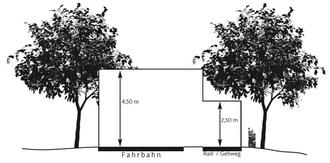 Über dem Gehweg muss ein Freiraum von 2,50 m und über der Fahrbahn ein Freiraum von 4,50 m, dem sogenannten Lichtraumprofil, vorhanden sein. Der Rückschnitt ist so vorzunehmen, dass der Zuwachs im folgenden Vegetationszeitraum nicht das Lichtraumprofil beeinträchtigt.