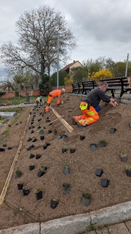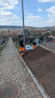 In den vergangenen Tagen hat der gemeindliche Bauhof unter Anleitung der Landschaftsarchitektin Frau Meßlinger das Pflanzbeet unterhalb der Leichenhalle neu gestaltet.