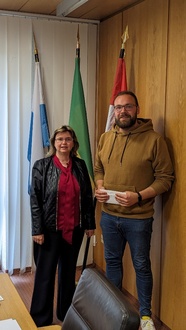Bürgermeisterin Hans bedankt sich bei Tobias Wieder, auch im Namen des Marktgemeinderates, für die konstruktive Zusammenarbeit und überreichte ihm zum Abschied ein Geschenk der Marktgemeinde Lehrberg.