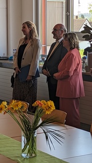 In einem Rundgang besichtigten Staatssekretärin Stolz und MdL Dr. Bauer mehrere Klassenzimmer der Grundschule, die neue Sporthalle und das Lernbaumhaus, das von der Kinderstiftung Playmobil finanziert wurde und im Juni 2023 eingeweiht wird. Das Lernbaumhaus ist ein ganz besonderes Projekt an dieser Schule. Es bietet den Kindern außerhalb des normalen Unterrichtsraums eine besondere Lernumgebung, wodurch die Motivation und die positive Einstellung für die dort gebotenen Lerninhalte gesteigert wird.