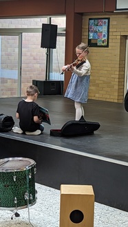 Abgerundet wurde die Veranstaltung durch den Auftritt der 7-jährigen Geigenspielerin Eva Heidingsfelder aus der Grundschule und durch einen Auftritt des Schulchors. Staatssekretärin Stolz nahm sich im Anschluss auch noch ausreichend Zeit, die Fragen der Schülerinnen und Schüler zu beantworten.