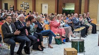 Neben Frau Staatssekretärin Stolz und MdL Dr. Bauer wurden von der Schulverbandsvorsitzenden und 1. Bürgermeisterin Renate Hans, Hans-Jürgen Saal von der Regierung Mittelfranken, Karoline Domröse vom Staatlichen Schulamt Ansbach, Schulleiter Bastian Schimscha und seiner Stellvertreterin Jasmin Halm, Florian Löffler, Vorstand der Kinderstiftung Playmobil und weitere Elternvertreter und Lehrerinnen und Lehrern der Schule recht herzlich begrüßt.
