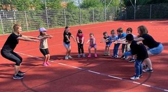 Je ein Team erlernte bei drei Terminen in der Sporthalle verschiedene Wege um sich zu entspannen. Dabei ging es zum Beispiel um Körperwahrnehmung mit Fühlen und verschiedenen Bewegungen sowie Konzentrationsschulung. Außerdem machten die Kinder eine Körperreise mit Muskelanspannung und Muskelentspannung. Anhand einer Geschichte sammelten sie erste Erfahrungen mit Yoga und Bewegungsübungen.