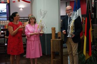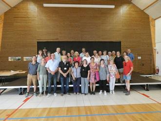 Gruppenfoto der Lehrberger Delegation mit den französischen Gastgebern beim Besuch eines Feriendorfes