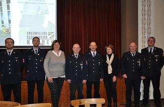 Meyerdierks überbrachte den Dank und die Grüße des Landkreises. Sie sprach ihre „Hochachtung vor der Leistung insbesondere der Ehrenamtlichen und der Jugend, die hier sehr aktiv sind“ aus. Kreisbrandinspektor Marco Brust vertrat Kreisbrandführer Benno Metz. Sein Dank galt vor allem den Aktiven. Unter denen wurde Tobias Bauer und Alexander Möller im Namen des Freistaates Bayern für ihren 25-jährige aktive Dienstzeit bei der Freiwilligen Feuerwehr das Ehrenzeichen in Silber und für 40-jährige aktive Dienstzeit Ralf Hergenröder, Gerald Kleinhenz und Karsten Mehler das goldene Ehrenzeichen verliehen. Brust dankte noch einmal persönlich Ralf Hornung, der im vergangenen Jahr nach 18-jähriger Dienstzeit sein Amt an Sebastian Bug abgegeben hatte.