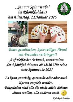 auf vielfachen Wunsch veranstalten wir in den Wintermonaten Januar bis März jeweils eine zünftige „Spinnstube“.