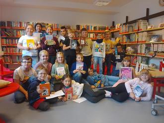 Ein Gruppenfoto soll an den Besuch in der Gemeindebibliothek erinnern: