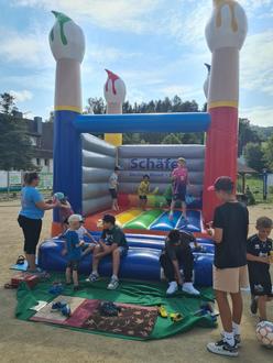 Die Hüpfburg der Fa. Steffen Schäfer begeisterte die Jungen und Mädchen wieder sehr, da sie ausgiebiges Toben, Sprünge und sogar den ein oder anderen Salto der Kinder ermöglichte.