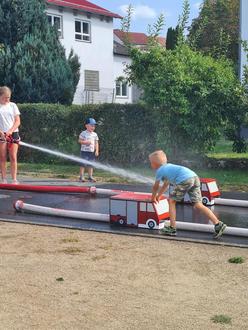 Das neue Wasserspiel fand begeisterten Zuspruch dank Kamerad Andreas Matzke. Tolle Idee und Umsetzung.