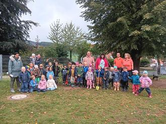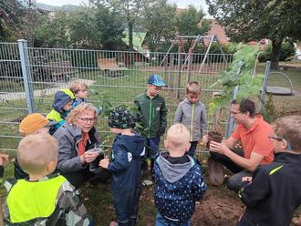 Am Donnerstag, den 12.09.24 war es endlich so weit: Gemeinsam mit dem ortsansässigen Gartenbauverein, vertreten durch Marion Herbert und Markus Will, haben wir in unserem Kindergarten eine ganz besondere Pflanzaktion durchgeführt. Die Vorschulkinder hatten uns zum Abschluss Himbeer-, Johannisbeer- und Heidelbeersträucher geschenkt, die wir nun feierlich in die Erde setzen durften.