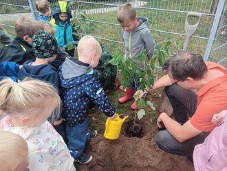 Die Aktion wurde im Vorfeld durch verschiedene Aktivitäten im Morgenkreis vorbereitet. So vertieften die Kinder das Thema "Sträucher und Beeren" durch eine passende Geschichte, Fingerspiele und kreative Fensterdekorationen. Gemeinsam mit den Kindern haben wir dann die Vorbereitungen getroffen, die Pflanzlöcher ausgehoben und die Sträucher fachgerecht eingesetzt. Die Mitglieder vom Gartenbauverein zeigten uns Schritt für Schritt, wie man beim Pflanzen vorgeht und worauf man achten muss.