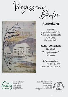 Die Wanderausstellung „Vergessene Dörfer“ ist vom 02.11. – 30.11. im Gasthof „Zur Grünen Au“ in Motten zu sehen und lädt zu einer eindrucksvollen Reise in die Vergangenheit ein. Nach Stationen im gesamten Landkreis und den angrenzenden Regionen macht die Ausstellung nun endlich bei uns Halt!