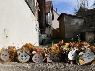Nach einem ausgiebigen Bad in den tollen bunten Herbstblättern liefen wir zum Rhönklubhäuschen zurück und bastelten tolle Igel mit Blättern, bemalten Kastanien und gestalteten Halloween Girlanden.