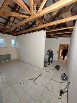 Die Seniorenmannschaft des SC Motten hat in den letzten zwei Wochen schon einiges bewerkstelligt. So wurde in der Heim- und Gästekabine die Holzverkleidung der Wände und die Holzdecke abgerissen, altes Dämmmaterial entsorgt und Trennwände verändert. In Eigenregie und in Absprache mit der Vorstandschaft werden die Arbeiten durch die Jungs durchgeführt. Hier wird viel Geschick gezeigt und einige gute Vorschläge umgesetzt.
