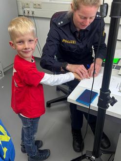 In der Zentrale hörten wir einen echten Funkspruch, was für glänzende Augen sorgte. Anschließend durfte jedes Kind seinen eigenen Fingerabdruck machen und erfuhr dabei, dass dieser einmalig ist.