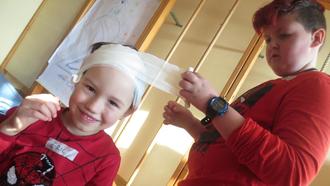 Unter diesem Motto verbrachten die Vorschulkinder des Kindergarten Kothen vier interessante Vormittage zusammen mit Isabelle Bott und ihrer Handpuppe, dem „Ritter Malte“, von den Maltesern in Fulda. Im Kurs „Abenteuer Helfen“ wurden die Kinder spielerisch an ein doch ernstes und wichtiges Thema, der Ersten Hilfe, herangeführt. Wie kann ich jemanden trösten, der sich verletzt hat? Wie lege ich einen einfachen Verband an? Was ist eine Rettungskette und wie setze ich einen Notruf ab? Dies alles wurde besprochen und geübt, um im Notfall richtig reagieren zu können. So bastelten die Kinder eine Rettungskette aus Papierringen und durften sich selbst Verbände anlegen, welche später stolz in der Gruppe präsentiert wurden. „Ritter Malte“ brachte sogar ein eigenes Lied mit, welches mit Freude gemeinsam gesungen wurde. Am letzten Tag bekamen die kleinen Ersthelfer feierlich eine Urkunde für die erfolgreiche Teilnahme überreicht.