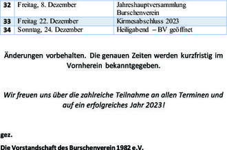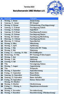 Termine 2023 Burschenverein Motten 1982 e.V.