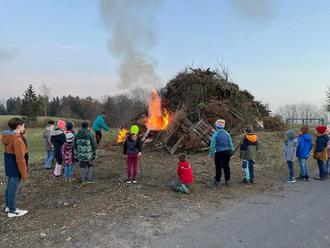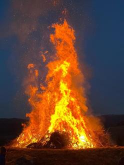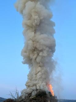 Das Feuer loderte pünktlich um 18:00 Uhr unter starker Unterstützung der anwesenden Kindern und dem Anzünder Georg. „So schön hat’s noch nie gebrannt“, sagten sie.