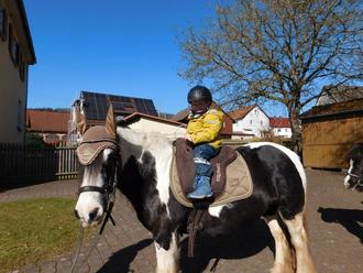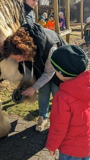 Anfang März wurde dann der Besuch der Familie Hillenbrand mit ihren Ponys Bonny und Smarty freudig erwartet. Im Garten des Kindergartens konnten so alle kleinen Pferdeliebhaber die Tiere aus der Nähe betrachten, sie ausgiebig streicheln, füttern und ihre Fragen an deren Besitzer stellen. Als besonderer Höhepunkt durften die Kinder auf dem Rücken der Pferde eine Runde über den Spielplatz reiten. Dieser Besuch wird sicherlich lange unvergessen bleiben. Wir sagen DANKE an Alex, Lina und Ida Hillenbrand, die dieses Erlebnis ermöglicht haben und natürlich an Bonny und Smarty, die unserer Neugier mit viel Geduld und Ruhe begegnet sind.