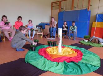 Weil mit dem Beginn des Frühlings und der Fastenzeit auch das Osterfest nicht mehr weit ist, hörten wir auch dieses Jahr wieder Geschichten von Jesus, sei es über den Seesturm oder dem Zöllner Zachäus und säten Ostergras für unser feierliches Osterfest. Natürlich wird durfte im Anschluss auch der Besuch des Osterhasen nicht fehlen.
