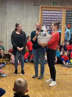 Eine besonders schöne Überraschung kam von unserer Krabbelgruppe, die sich alle zwei Wochen in unserem Bewegungsraum trifft: Als Dankeschön überreichten sie uns einen liebevoll gestalteten Präsentkorb. Wir haben uns sehr darüber gefreut! Es ist uns ein wichtiges Anliegen, dass bereits die Kleinsten erste Erfahrungen mit dem Kindergarten sammeln können.