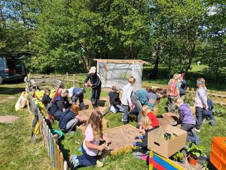 Im Mai haben wir unsere Beete bepflanzt. Auch unsere 6 neuen Mini- Hochbeete mussten wir mit Erde befüllen. Hierbei hat uns Felix geholfen, die richtige Erde zu finden. Er hat den Kindern erklärt, welche Erde am besten ist und wie sie aufgebaut ist. Danach haben wir die Beete bepflanz, Kartoffeln gesetzt und den Garten auf Vordermann gebracht. Zur Stärkung gab es Brot mit Frischkäse und Kräutern aus dem Entdeckergarten.