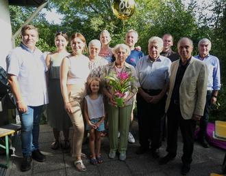Im Kreise ihrer Familie, mit ihren Söhnen Alexander und Joachim und vielen Freunden und Bekannten, feierte Resi Dornheim aus Marienweiher ihren 80. Geburtstag. Resi Dornheim, gebürtige Steinbacherin, heiratete 1966 ihren Mann Albrecht und baute mit ihm die weithin bekannte Wäschefabrik Dornheim auf. Im Jahre 2002 gingen beide in Rente und stellten den Betrieb ein. Bürgermeister Franz Uome gratulierte der Jubilarin im Namen der Marktgemeinde und wünschte alles Gute für die kommenden Jahre. Für die katholische Kirchengemeinde überbrachte Pfarrer Florian Malcherczyk die besten Glück- und Segenswünsche. Mit einem großen Standkonzert, schloss sich am Abend auch der Musikverein Marktleugast den Gratulanten an.