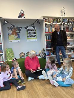 Vorlesenachmittag mit der Lesepatin Marina Kotova und unserem Ersten Bürgermeister Franz Uome.