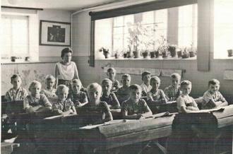 Udo Rödels Schulklasse in Marktleugast. Er ist der Zweite von links in der vorderen Reihe.