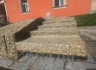 Für Udo Rödel soll Kunst öffentlich präsent sein. Das Foto zeigt die aus Granit gehauene Kaskade neben dem Kriegerdenkmal in Marktleugast.