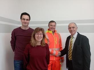 Unser Bild zeigt (von links) Cedric Fechner und Sabine Gössler vom Bauamt sowie den neuen Bauhofleiter Alexander Pittroff zusammen mit Ersten Bürgermeister Franz Uome.