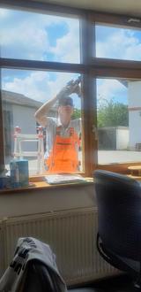Die Holzfenster des Bauhofgebäudes waren verwittert und haben einen neuen Schutzanstrich erhalten.