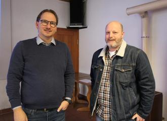 Zweiergespräch: Noch vor Beginn der Bürgerversammlung besprach sich Bürgermeister Wolfram Thein (links) noch ausgiebig mit Fabian Friedrich vom Technischen Büro Werner, Eltmann.
