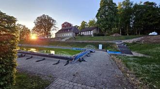 Foto: Helmut Will Das Freibad Altenstein wird saniert. Die Arbeiten haben begonnen. Hier geht die Sonne gerade unter und alle hoffen darauf, dass sie nach der Bauzeit wieder für die Badbesucher scheint. Foto: Helmut Will