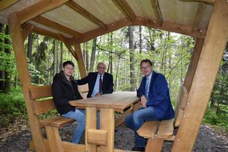 Wanderer im beliebten Naturpark Haßberge können sich über ein neues Schmuckstück freuen: in Altenstein, einem idyllischen Ortsteil von Maroldsweisach, wurde eine moderne, überdachte Sitzgruppe errichtet. Sie befindet sich im Wald in Richtung Lichtenstein entlang der Erlebnistour „Sagenhaftes im Burgenwinkel“. Die offizielle Einweihung des Rastplatzes fand heute statt.