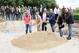 Der Spatenstich am Freibad Altenstein (von links): 2. Bürgermeisterin Heidi Müller-Gärtner, MdB Sabine Dittmar, Stephan Schütz, Planungsbüro Eichorn & Partner, Bürgermeister Wolfram Thein, Baurätin Laura Oberst, Regierung Unterfranken und 3. Bürgermeister Dieter Hepp.