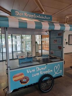 Ende Juli wurde das „Krapfenbäcker-Infomobil“ offiziell eröffnet. Seitdem tourt die interaktive Ausstellung quer durch den Landkreis Haßberge. So war sie unter anderem schon auf dem Festgelände der BR-Radltour in Ebern zu sehen, beim Bürgerfest am Marktplatz in Königsberg, auf dem Breitbrunner Flohmarkt sowie am neu gestalteten Dorfplatz in Römershofen.