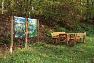 Neuer Picknicktisch neben Infotafel am Hollacher Berg