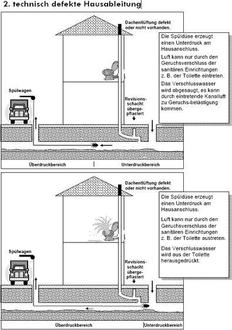 Das lässt darauf schließen, dass sich lhre Dachentlüftung und / oder Ihr Revisionsschacht in einem nicht ordnungsgemäßen Zustand befindet, überprüfen Sie daher zunächst lhre Anlagen. Holen Sie sich ggf. Rat bei lhrem Installateur. Überprüfen Sie, ob Ihr Revisionsschacht auch wirklich frei und nicht unter Flur liegt (z. B. überpflastert wurde), und dass der Schachtdeckel nicht durch Folien oder ähnliches verschlossen wurde. Ist lhre Dachentlüftung in Ordnung, vergewissern Sie sich, dass auch alle Becken an die Dachentlüftung angeschlossen sind, insbesondere, wenn das Ereignis nur an einer Stelle (z. B. in der Gästetoilette) aufgetreten ist. Bei nachträglich angeschlossenen Sanitäranlagen ist dies der häufigste Grund.