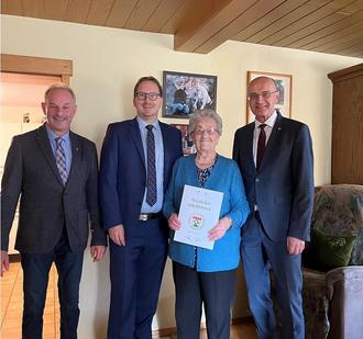 Am Dienstag, den 12.11.2024 durfte unser 1. Bürgermeister Wolfram Thein zusammen mit dem Landrat und Sohn der Jubilarin, Wilhelm Schneider und dem Gemeinderat Harald Deringer, Frau Irmgard Schneider zum 90. Geburtstag gratulieren.