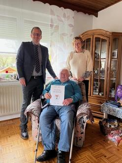Am Montag, den 18.11.2024 durfte unser 1. Bürgermeister Wolfram Thein zusammen mit der stellv. Landrätin Birgit Bayer Herrn Johann Streng zum 90. Geburtstag gratulieren.