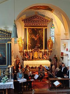 Am ersten Freitag im Mai fand bei schönstem Frühlingswetter ein kleines, aber feines Konzert im Marquartsteiner Burgkirchal statt. Angela Polleichtner las nachdenkliche, aber auch humorvolle Geschichten passend zum Frühjahr vor und Claudia Judex war mit dem Chiemgauer Flötenensemble und dem Rabendener Kirchenchor zu Gast. Das Repertoire der Musiker erstreckte sich von der Klassik bis zur Moderne, doch auch bayerische Klänge drangen in die Gehörgänge der zahlreichen Zuhörer. Gerade die Kombination aus Instrumenten und Chorgesang sorgten für kurzweilige Unterhaltung. Exzellent vorgetragene Marienlieder wurde von klassisch „altem“ Liedgut aufgelockert.