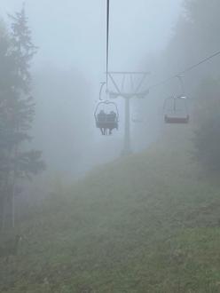 Am Samstag, den 13. Mai am frühen Morgen war die Vorfreude schon groß, auch wenn die Aussicht aufs Wetter nichts Gutes ahnen ließ: Im dichten Nebel konnte man den Sessel vor sich kaum sehen – das hat aber die Stimmung am Tag der Jubiläumsfeier kein bisschen getrübt! Denn diejenigen Gäste, die da waren, haben den Weg nach oben gefunden: Schon seit einem halben Jahrhundert befördert die Hochplattenbahn ihre Fahrgäste verlässlich vom Tal rauf auf den Berg (und natürlich auch wieder runter).